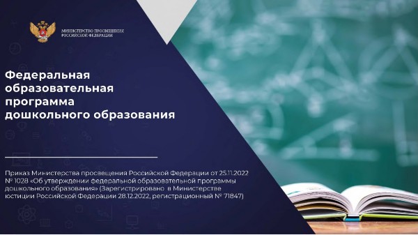 С 1 сентября 2023 года в соотвтетствии с приказом Министерства Просвещения РФ от 25.11.2022 г. № 1028 "Об утверждении федеральной образовательной программы дошкольного образования" дошкольные образовательные учреждения начнут работать по новой Федеральной образовательной программе дошкольного образования - ФОП ДО